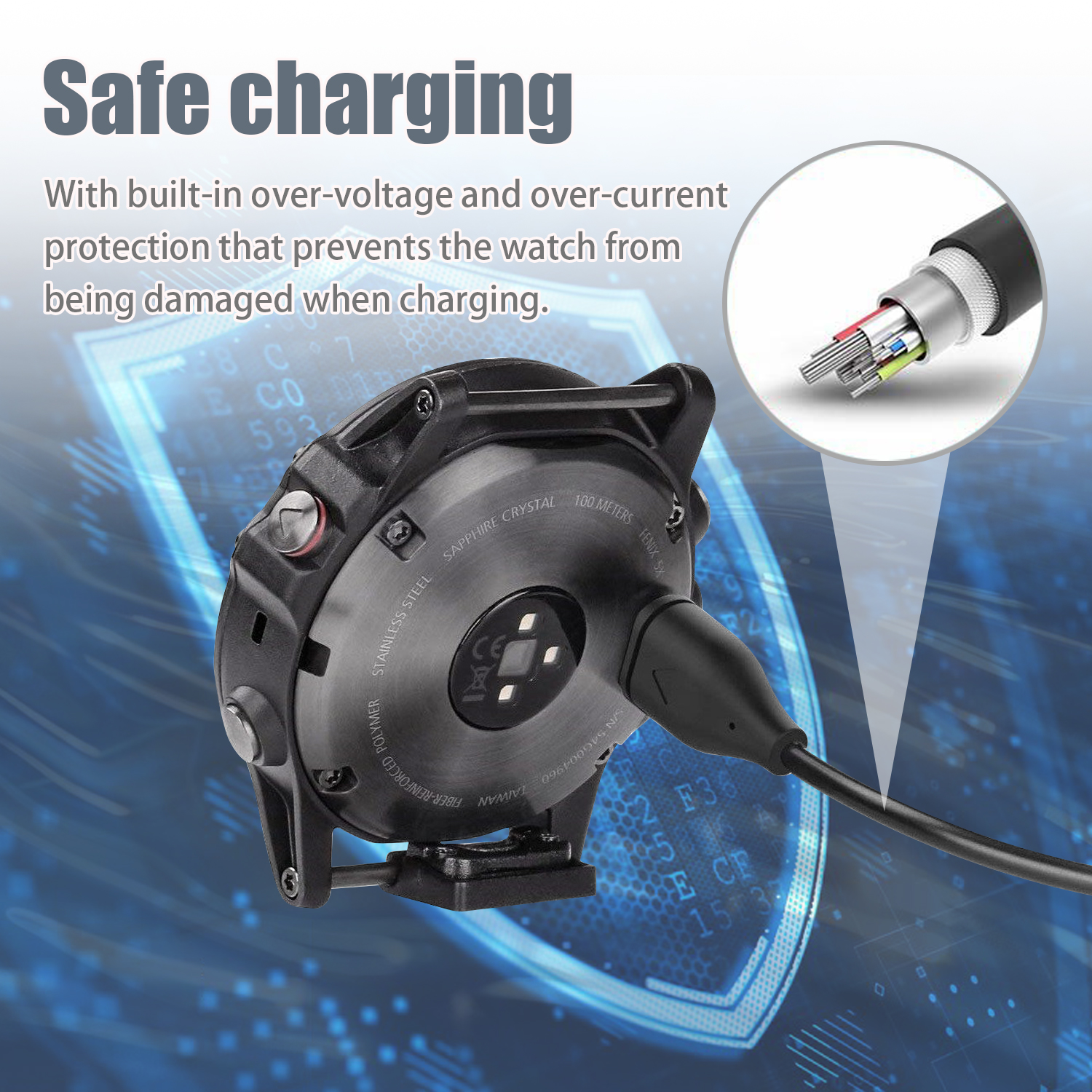 Chargement sécurisé : Ce câble a une protection intégrée contre les surtensions et les surintensités qui empêche la montre d'être endommagée lors du chargement.