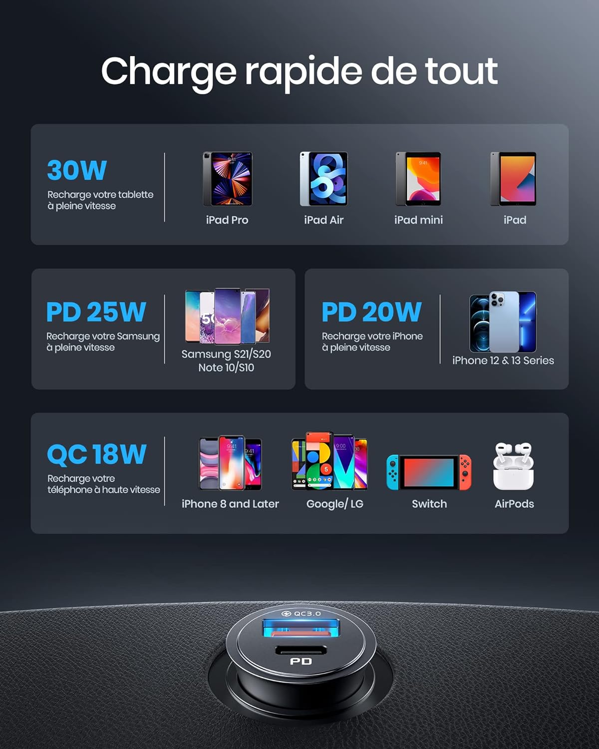 | Libellé | Chargeur Rapide Voiture 2 en 1 USB et USB C - Allume Cigare - Little Boutik© |