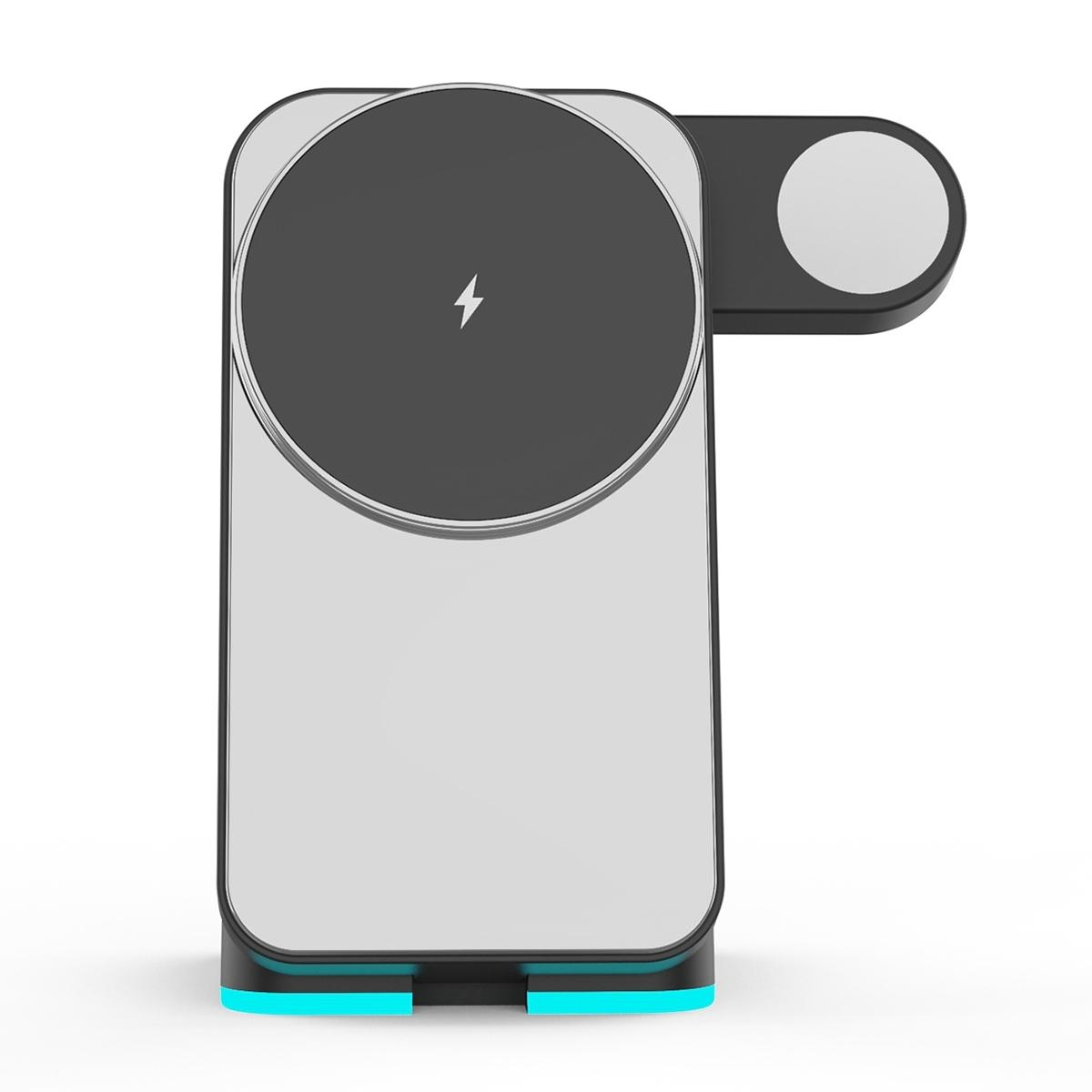 Chargeur Sans Fil LED RGB 3-en-1 Compact Rapide Pour iPhone AirPods Apple Watch Noir YONIS