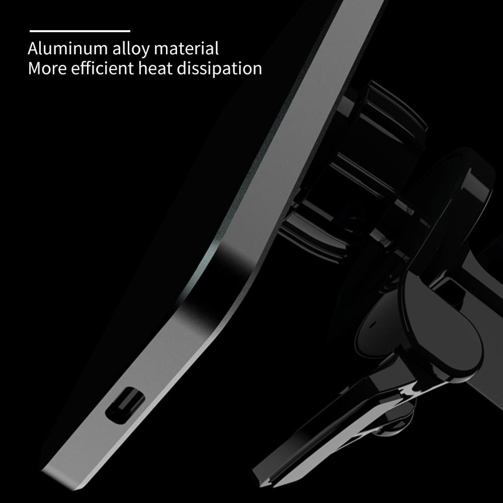 Caractéristiques Distinctives du Chargeur Sans Fil Voiture.Fabriqué en alliage d'aluminium avec une surface en verre trempé, ce chargeur allie robustesse et élégance. Sa finition soignée, fruit d'un traitement CNC, le rend non seulement durable mais aussi esthétiquement plaisant. Profitez d'une expérience de charge sans fil simplifiée et efficace avec ce chargeur sans fil voiture.