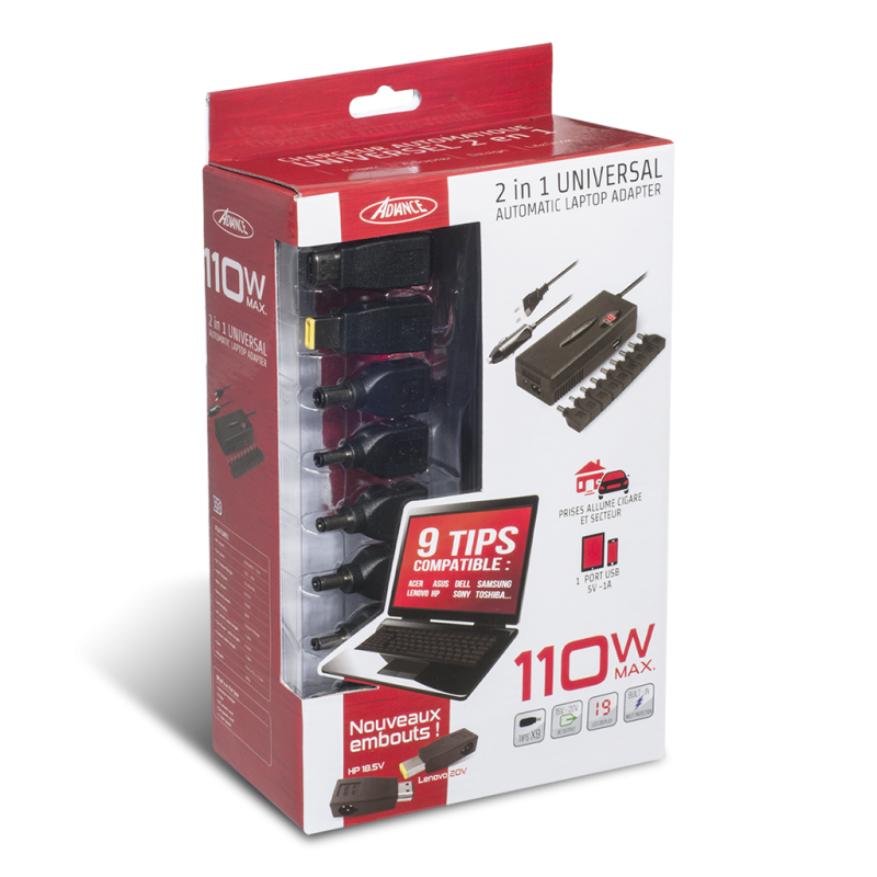 | Libellé | Chargeur universel pour pc portable - 90W - Allume cigare - Advance |