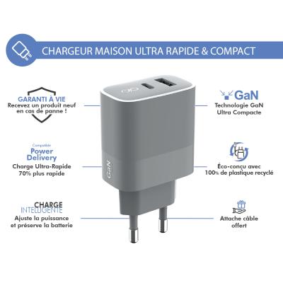| Libellé | Chargeur USB A + USB C 45W (30+12W) Power Delivery GaN Gris + Garantie à vie Force Power |