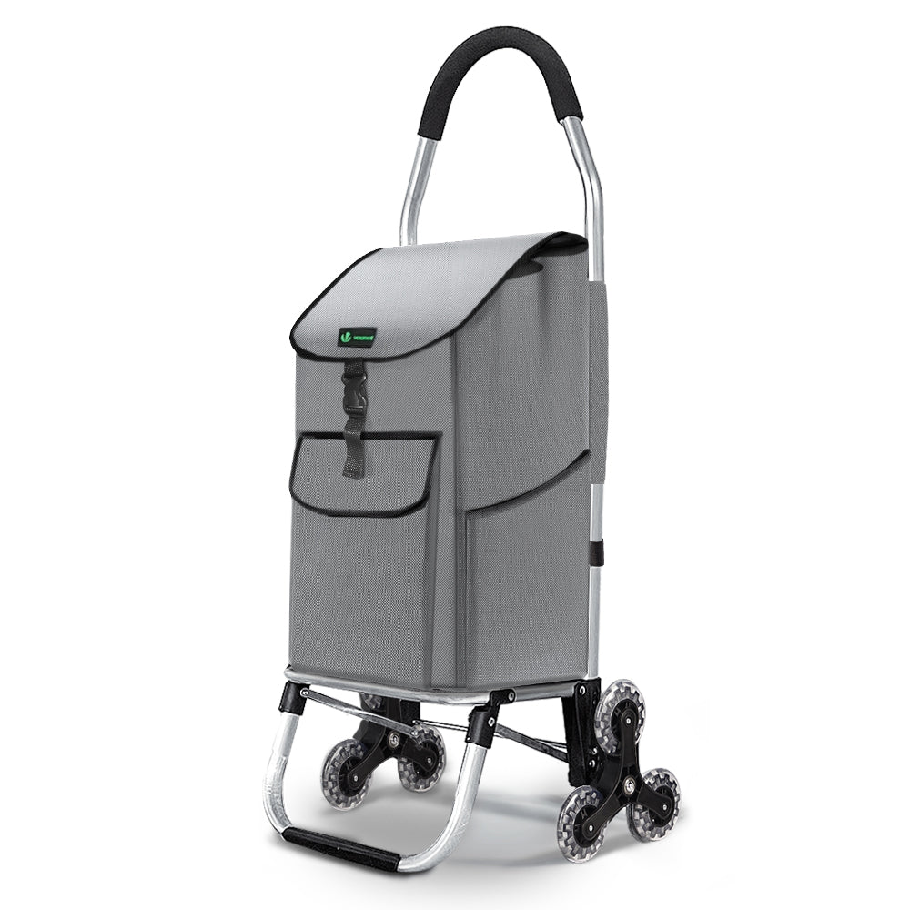 Chariot de courses pliable monte escalier aluminium gris VOUNOT - 6 roues, sac imperméable et léger