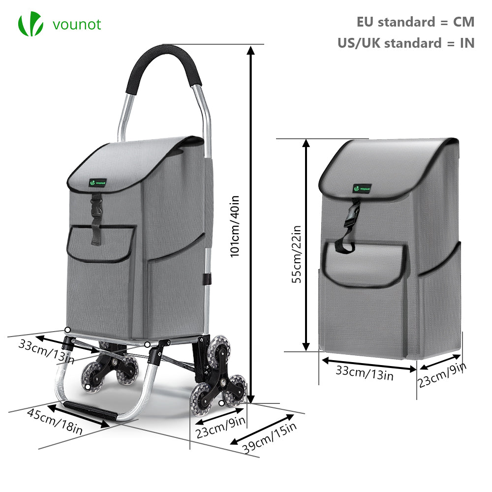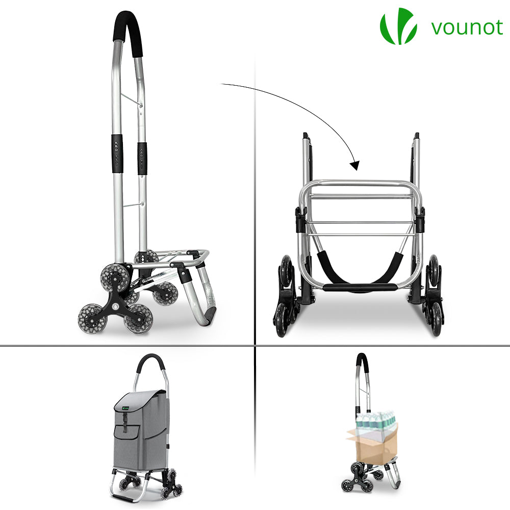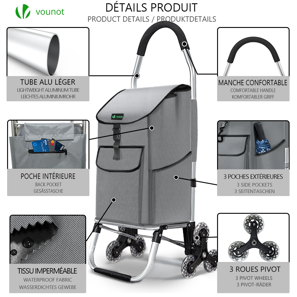 | Libellé | Chariot de courses pliable monte escalier aluminium gris VOUNOT - 6 roues, sac imperméable et léger |