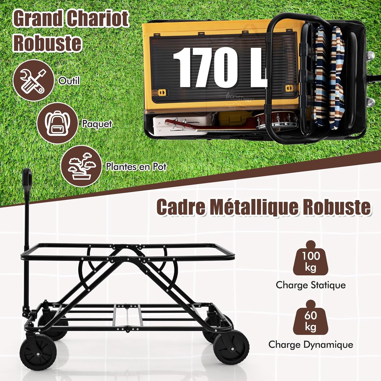 - # 𝐆𝐫𝐚𝐧𝐝𝐞 𝐂𝐚𝐩𝐚𝐜𝐢𝐭é 𝐝𝐞 𝐒𝐭𝐨𝐜𝐤𝐚𝐠𝐞 # Ce chariot de plage dispose d'une grande capacité de 170 L pour accueillir des outils, des plantes, du matériel et plus encore - un incontournable pour les aventures en plein air et le jardinage domestique, ce qui le rend parfait pour une utilisation comme chariot de jardin, chariot de plage ou même un chariot d'épicerie.