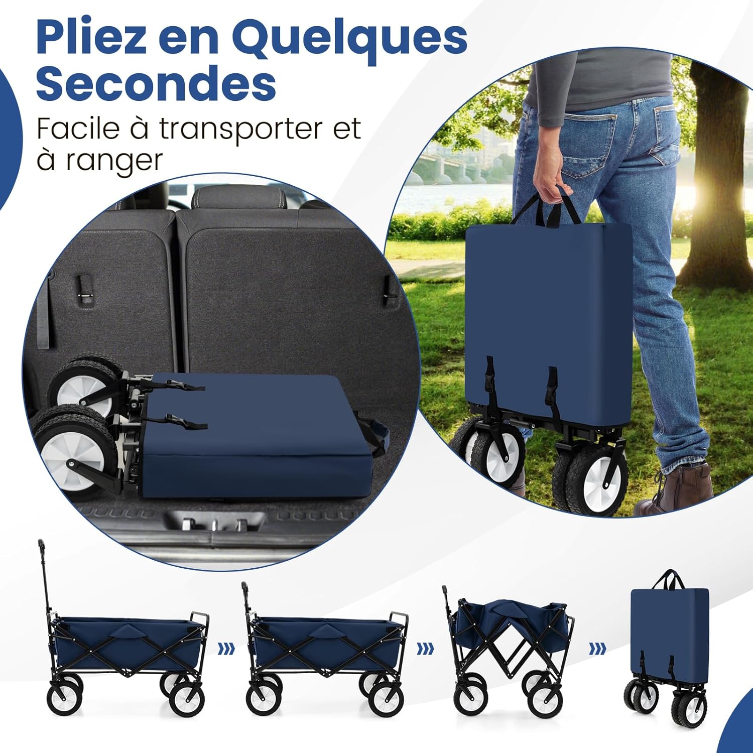 | Libellé | Chariot de plage pliable, chariot à roulettes 82 l, tissu oxford résistant, 4 roues taille compacte, bleu |