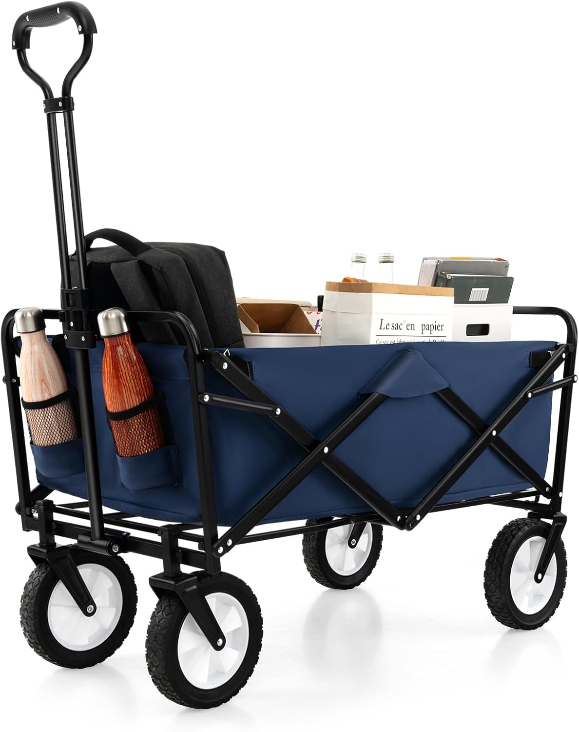 | Libellé | Chariot de plage pliable, chariot à roulettes 82 l, tissu oxford résistant, 4 roues taille compacte, bleu |