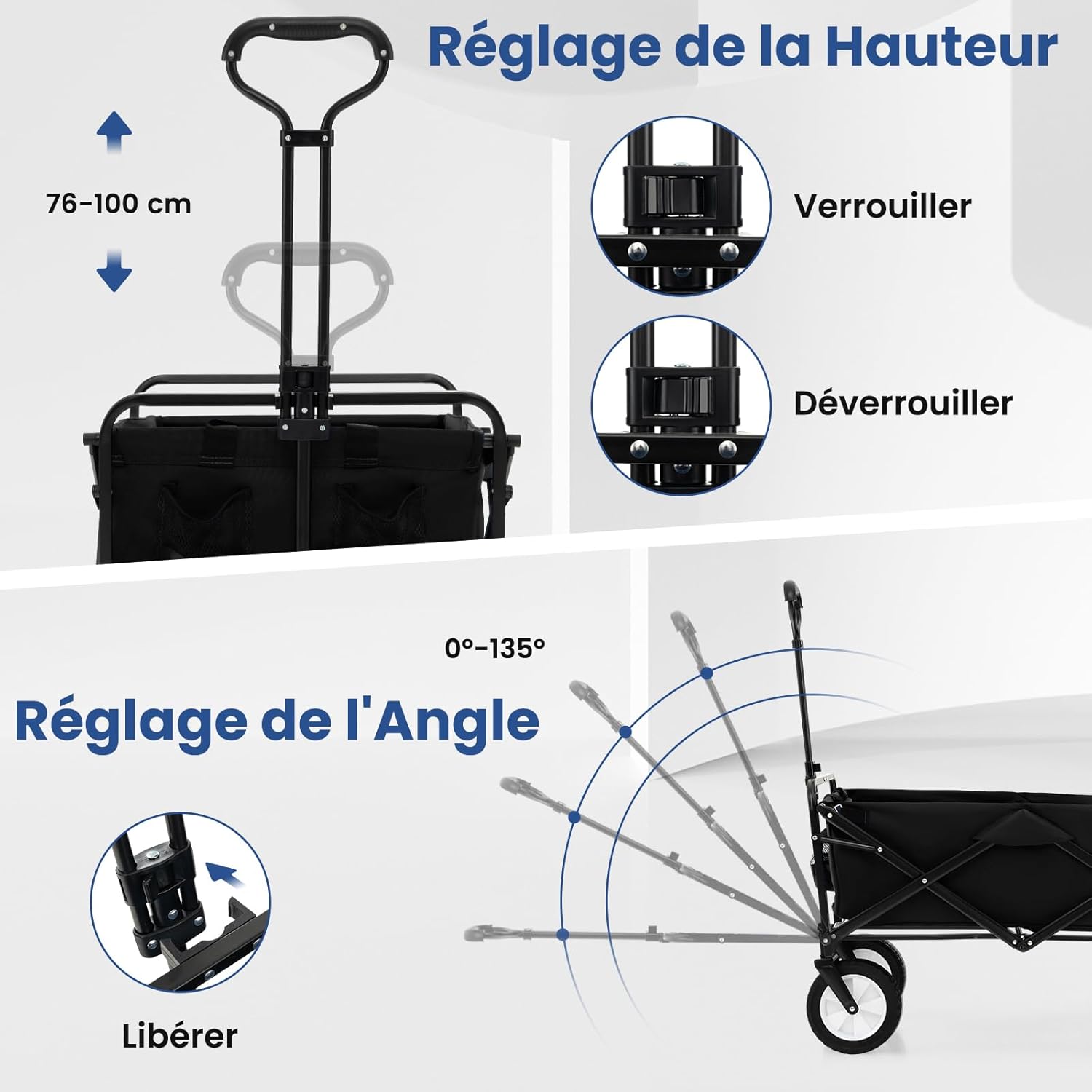 | Libellé | Chariot de plage pliable, chariot à roulettes 82 l, tissu oxford résistant, 4 roues taille compacte, noir |