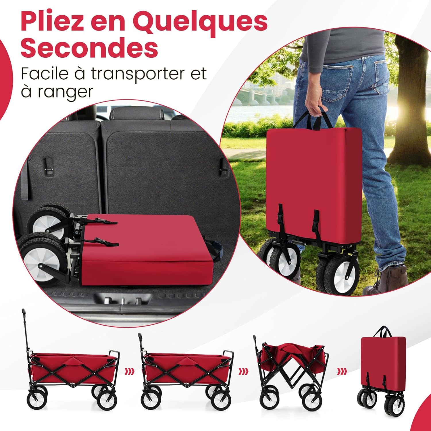 | Libellé | Chariot de plage pliable, chariot à roulettes 82 l, tissu oxford résistant, 4 roues taille compacte rouge |