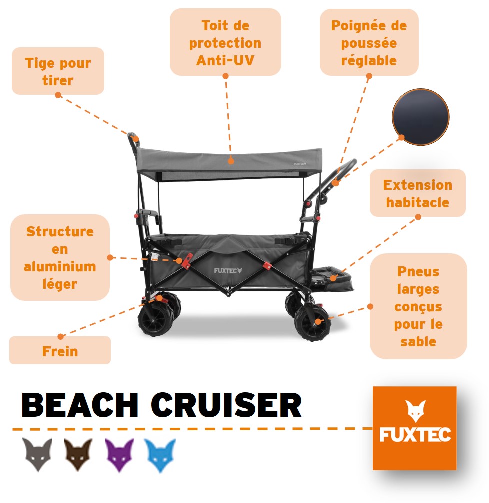 Libellé Chariot de plage pliable gris - FUXTEC Beach Cruiser - transport enfant 75kg