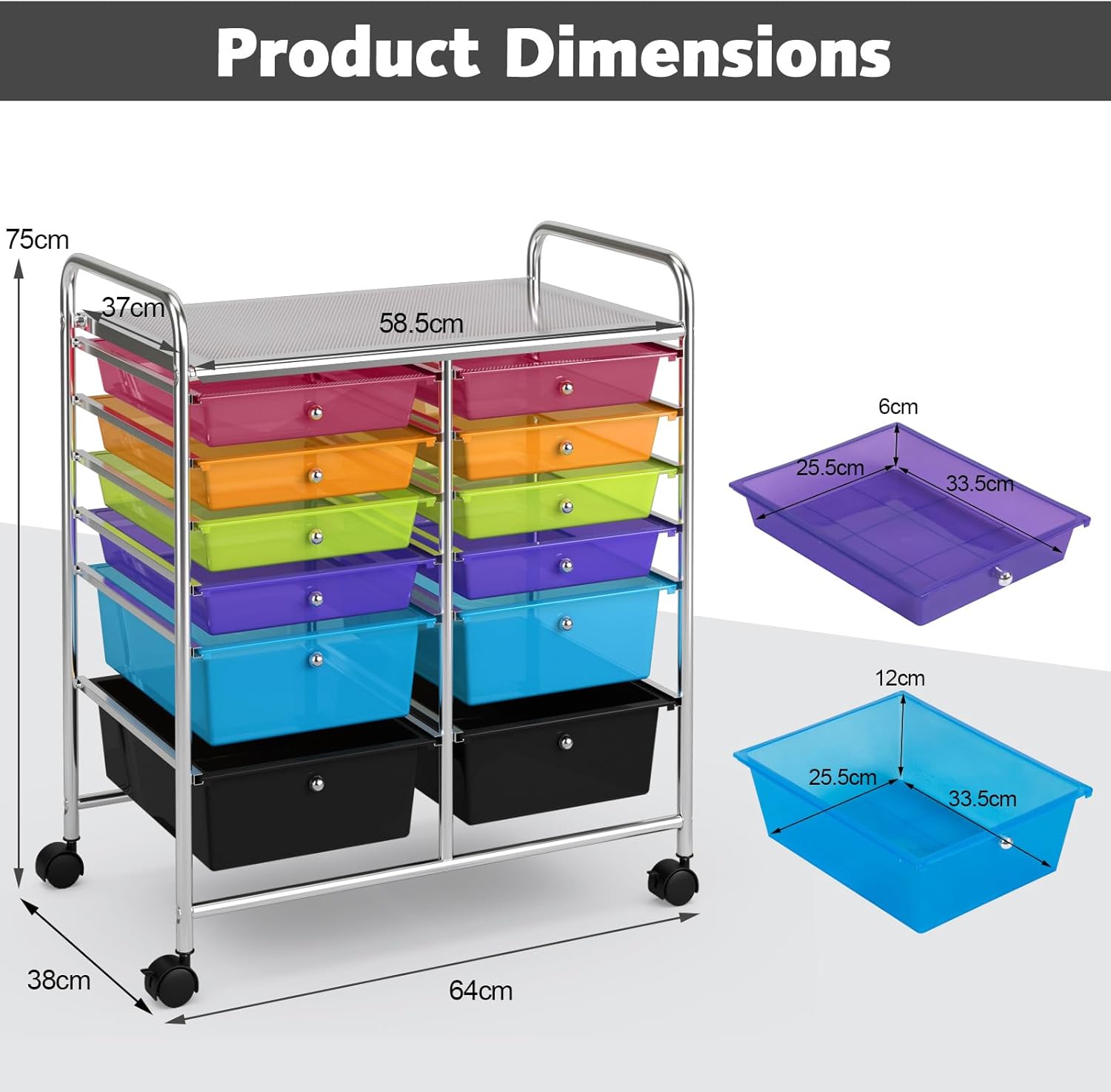 - Grand Espace de Rangement : Ce chariot de rangement a 12 tiroirs (8 petits tiroirs et 4 grands tiroirs) qui offrent beaucoup d'espace empilables.