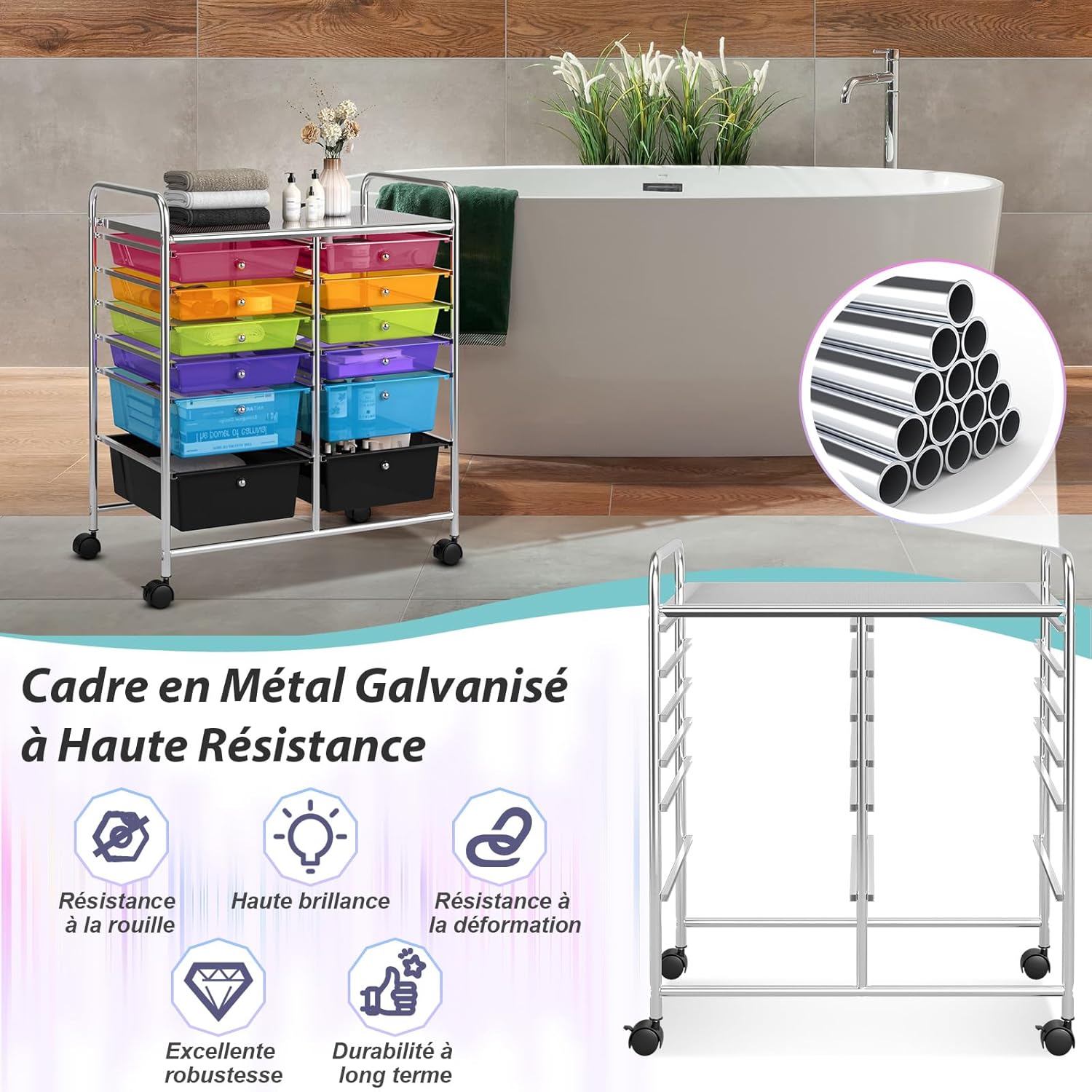 | Libellé | Chariot de rangement 12 tiroirs, tour de rangement à roulettes, cadre en acier, pour chambre, bureau |