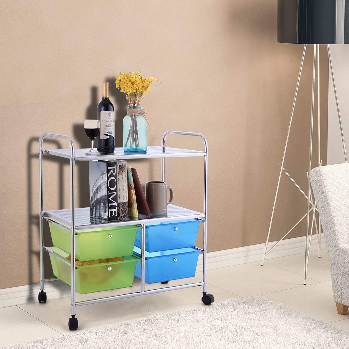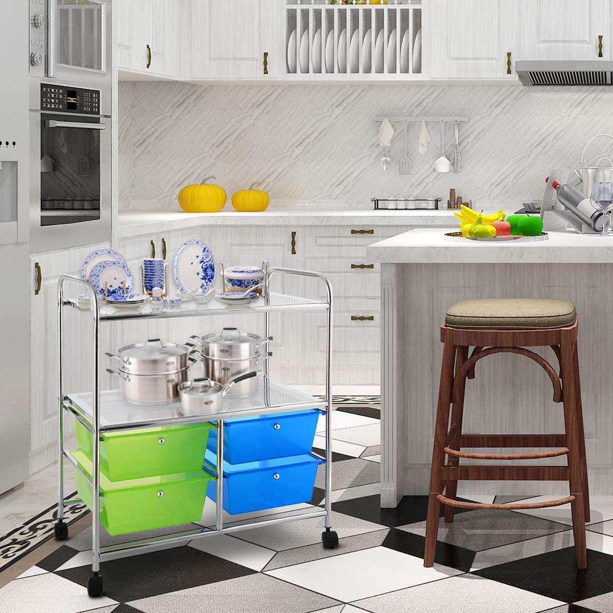 - Espace de stockage diversifié : La structure du chariot à outils avec tiroirs est en trois couches. Les deux plaques supérieures peuvent être utilisées pour placer des objets plus volumineux tels que des plantes en pot. Les objets fragiles tels que les bols peuvent être placés dans 4 tiroirs, qui ont une grande ténacité et protègent vos objets stockés, et différents coloris facilitent votre classement.