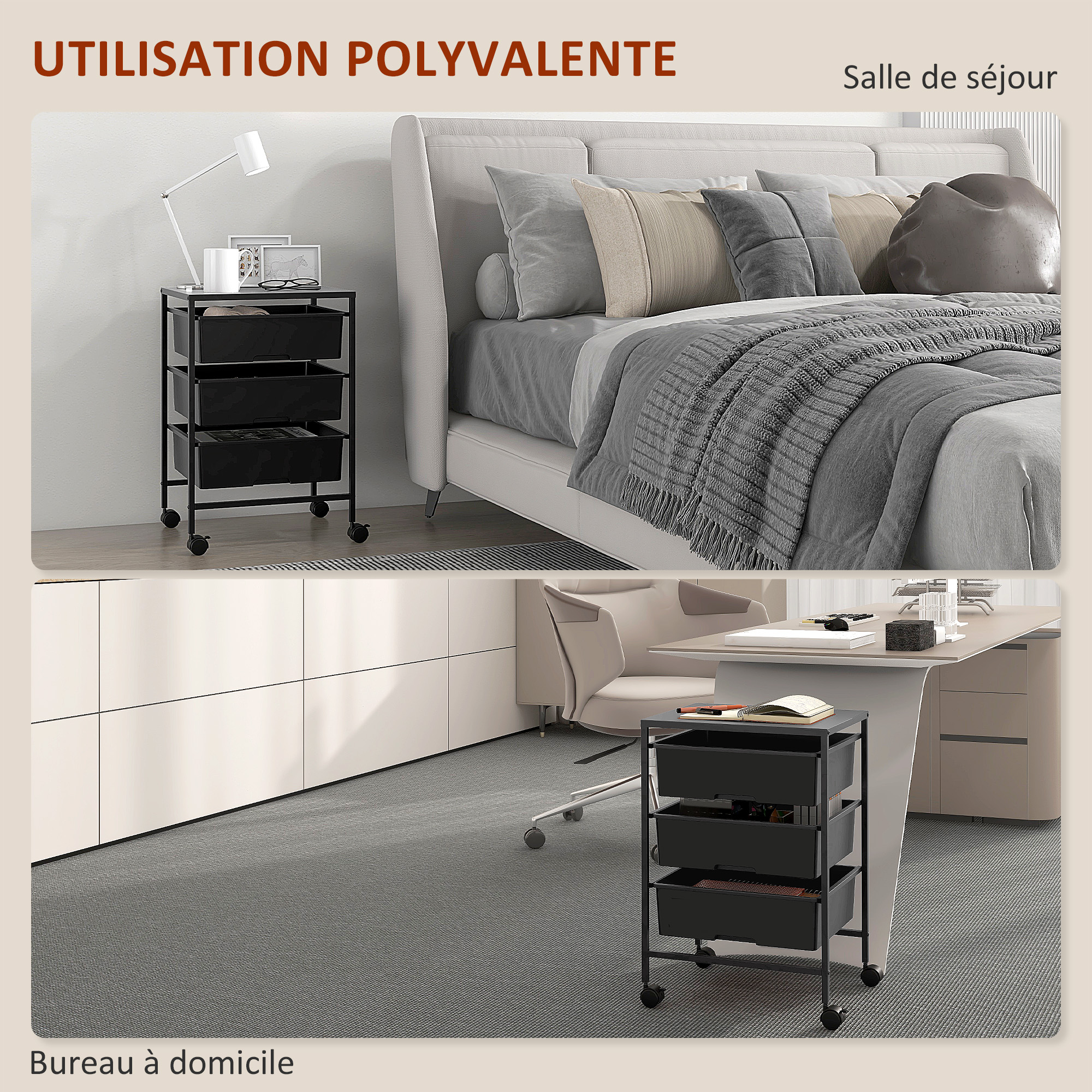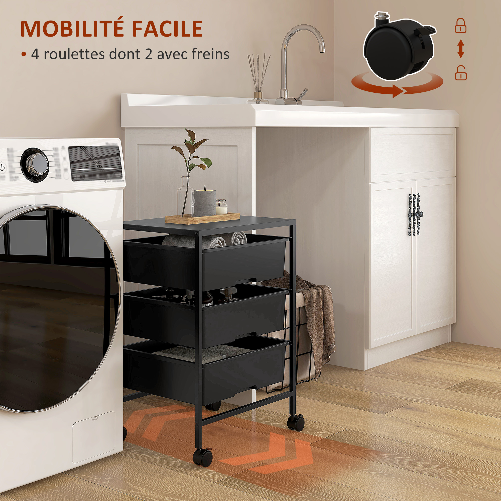 Chariot de rangement à 4 niveaux - 3 paniers et plateau - roulettes verrouillables - acier PP noir