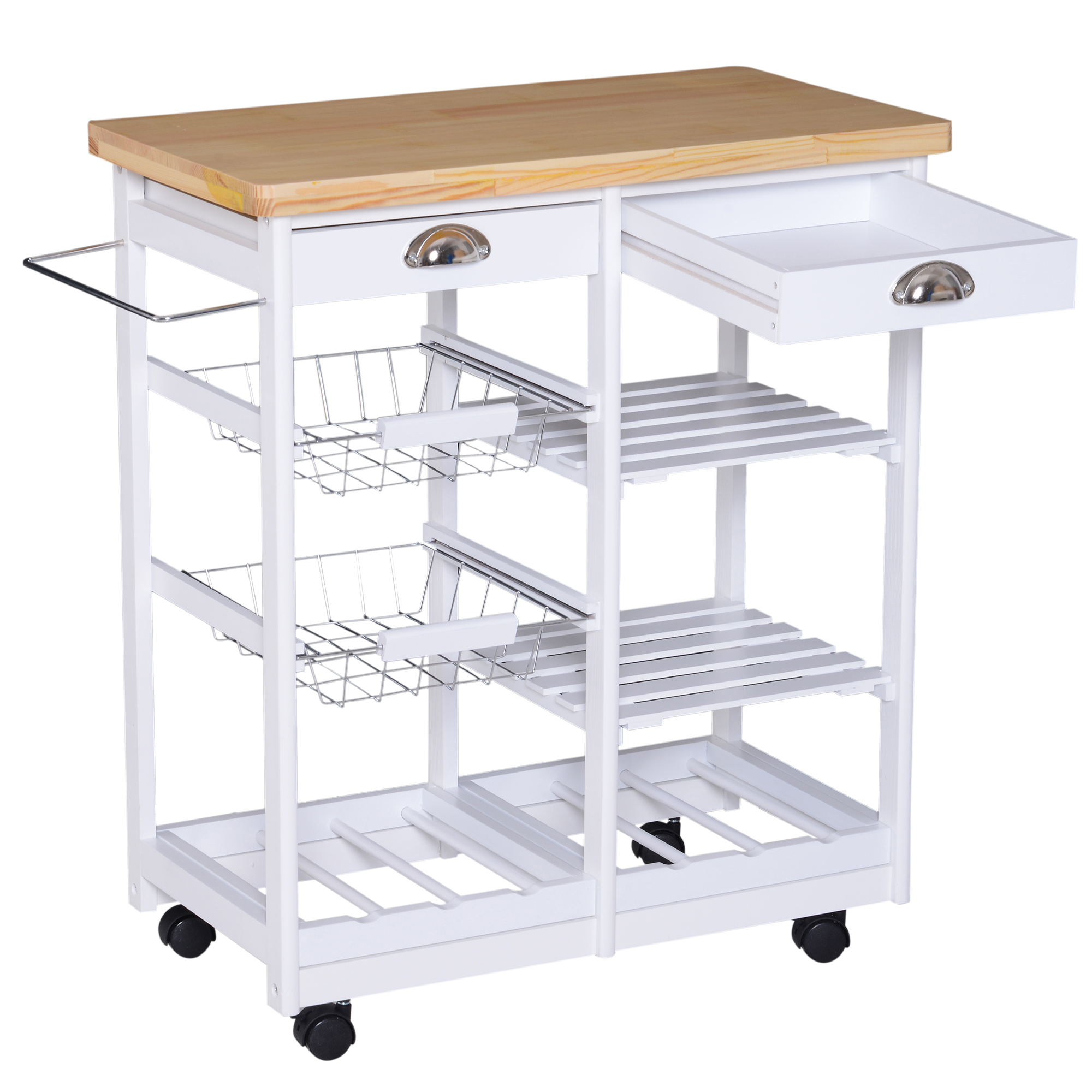 | Libellé | Chariot de service desserte de cuisine à roulettes multi-rangements 74L x 37l x 76H cm plateau bois massif pin châssis MDF blanc |
