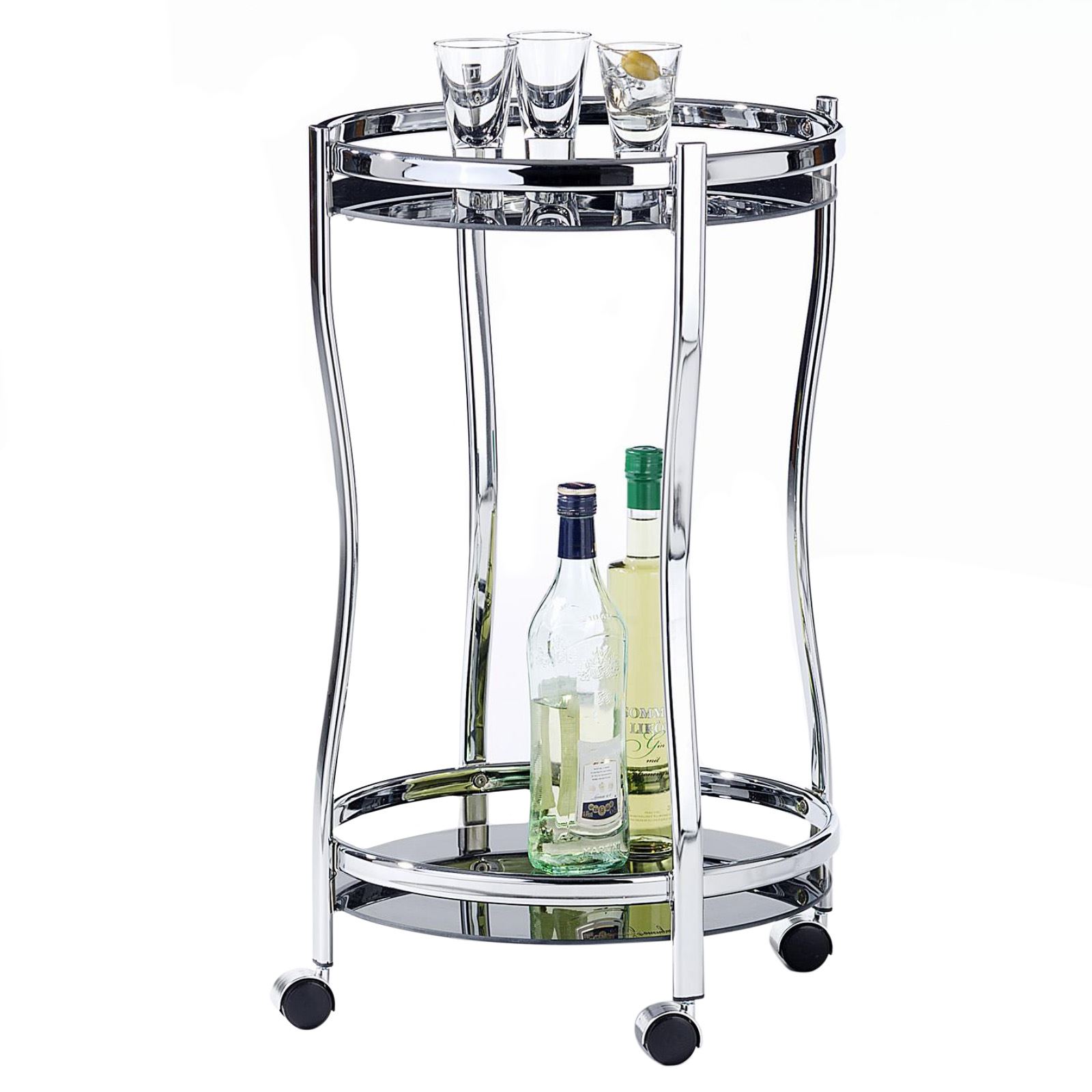 | Libellé | Chariot de service VEGA table d'appoint ronde sur roulettes chariot à thé et boisson en métal chromé 2 étagères en verre trempé noir |