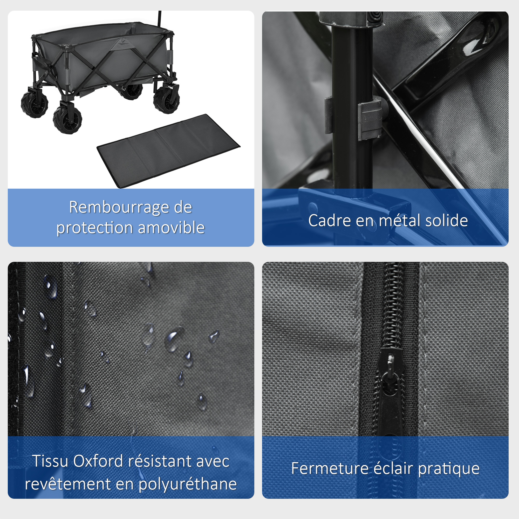 - Matériaux : métal, tissu Oxford