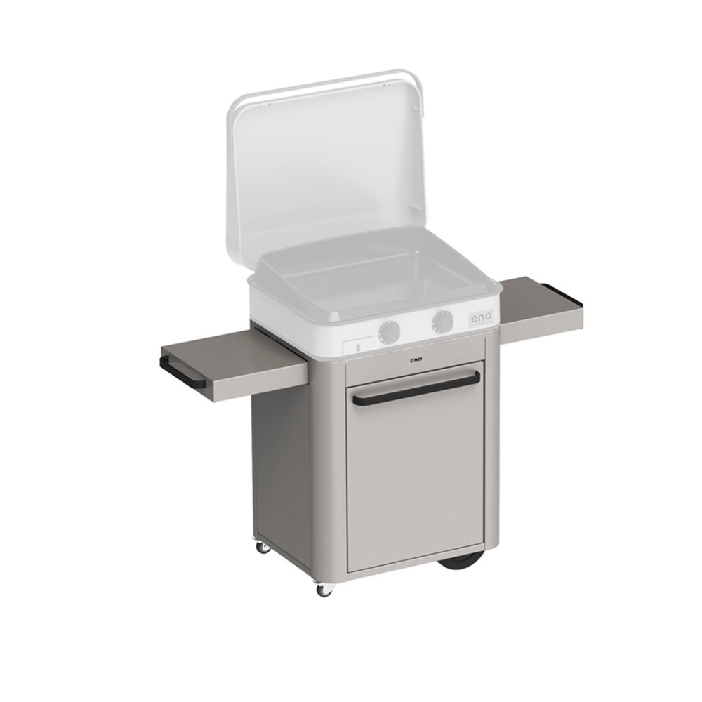 570282018801 - chariot pour plancha inox - Transportez facilement votre Enosign 65 570282018801 grâce au chariot desserte plancha fermé en inox marin de la marque Eno.Vous êtes tombés amoureux des cuissons sur votre plancha Enosign 65 Eno ? Il est possible d’en profiter encore plus en l’installant sur sa desserte fermée tout inox.Grâce à ce support, réalisez vos meilleures cuissons où vous le souhaitez dans votre extérieur sans craindre des déplacements compliqués. En effet, ce dernier est pourvu d’un système de 4 roues dont 2 pivotantes avec frein.En plus, ce chariot possède aussi 2 tablettes latérales vous offrant un support stable pour poser vos plats remplis de vos préparations alléchantes.Pas d’inquiétude quant au rangement de votre chariot, ces 2 tablettes sont extensibles grâce à leur installation sur glissières.Il est aussi très facile de cacher votre bouteille de gaz grâce au rangement interne du chariot. La porte permet de la dissimuler à la vue de tous. De plus, la longue poignée facilite l’ouverture et la fermeture de cette dernière tout en y accrochant vos accessoires. - Type de produit : Chariot plancha.