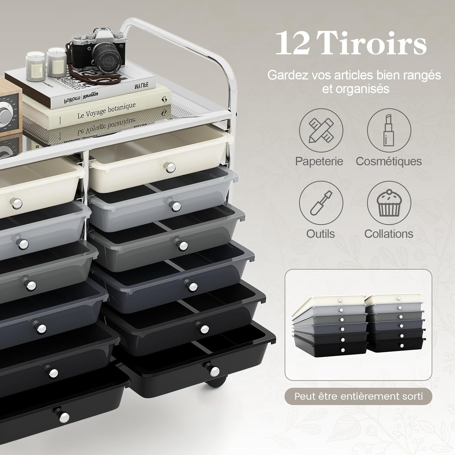 12 tiroirs qui peuvent être insérés et retirés à volonté