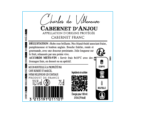 | Libellé | Charles de Villeneuve, 2023 - Cabernet d'Anjou AOP - Rosé - 75 cl |