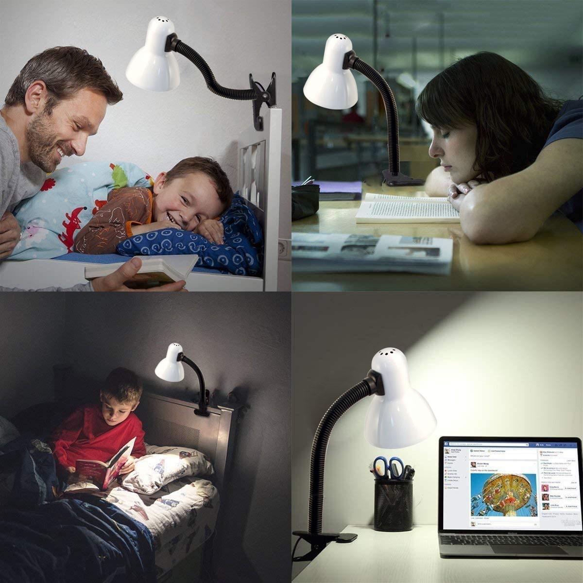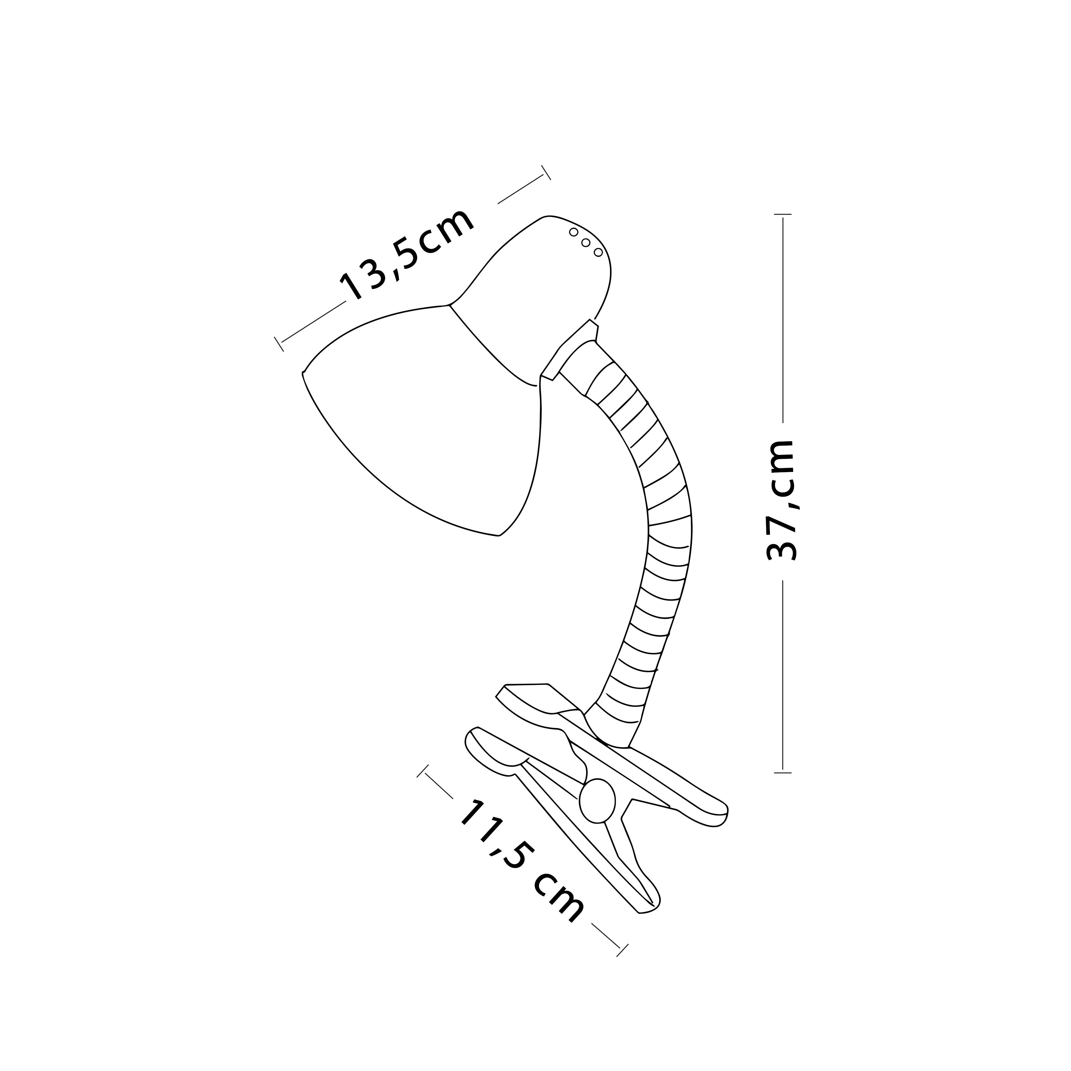 Lampe de table / bureau avec pince et douille E27 pour ampoule (non fournie); l'ampoule peut être à LED, à incandescence ou à économie d'énergie: max 40W. Lampe munie de: bras pivotant, câble de 150 cm et interrupteur. Idéale pour les étudiants, bureau enfant, garage, établis, lampe de chevet..Abat-jour et base en métal. Un modèle classique qui ne se démode jamais.