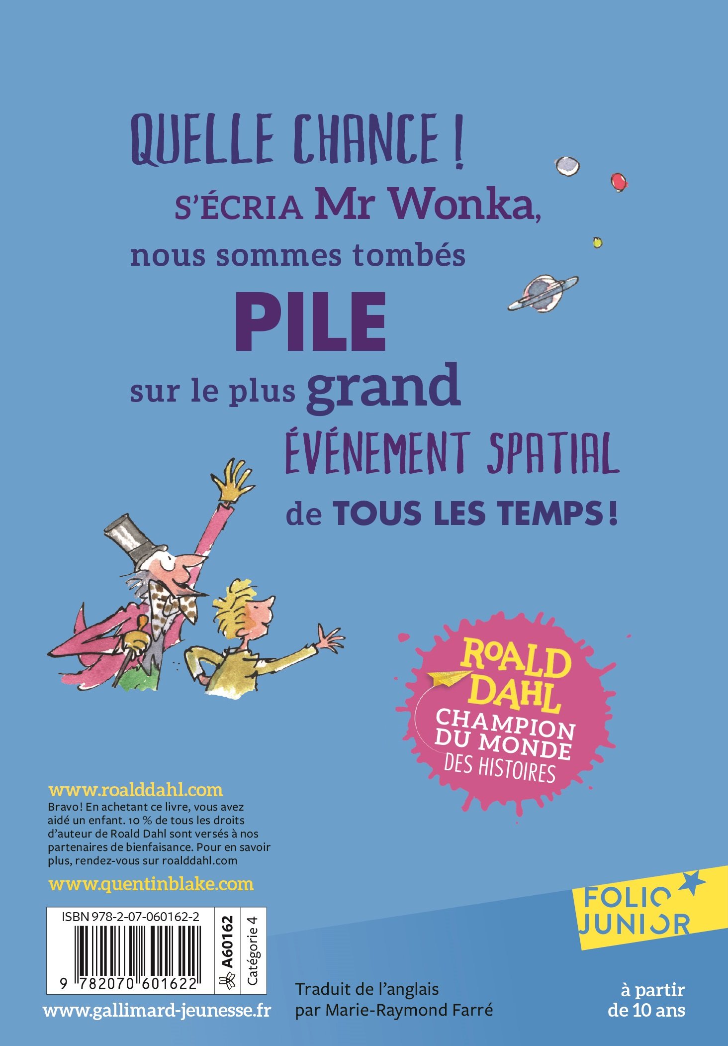"Quelle chance, s'écria Mr Wonka, nous sommes tombés pile sur le plus grand événement spatial de tous les temps !" Woush ! Dans le grand ascenseur de verre, Willy Wonka, Charlie Bucket et sa famille survolent la chocolaterie ! Ils voient le monde en bas mais ils ne sont pas seuls : le premier hôtel spatial a ouvert. Et les bêtes les plus méchantes, les plus vindicatives, les plus meurtrières de tout l'univers y rôdent : les Kpoux Vermicieux. Alors accrochez bien vos estomacs et vos chapeaux ! Seuls Charlie et Willy Wonka peuvent empêcher les Kpoux de tout détruire.