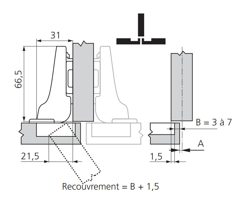 | Libellé | Charnière Clip Top 110° demi coudé sans ressort à visser - BLUM - CHA70T365 |