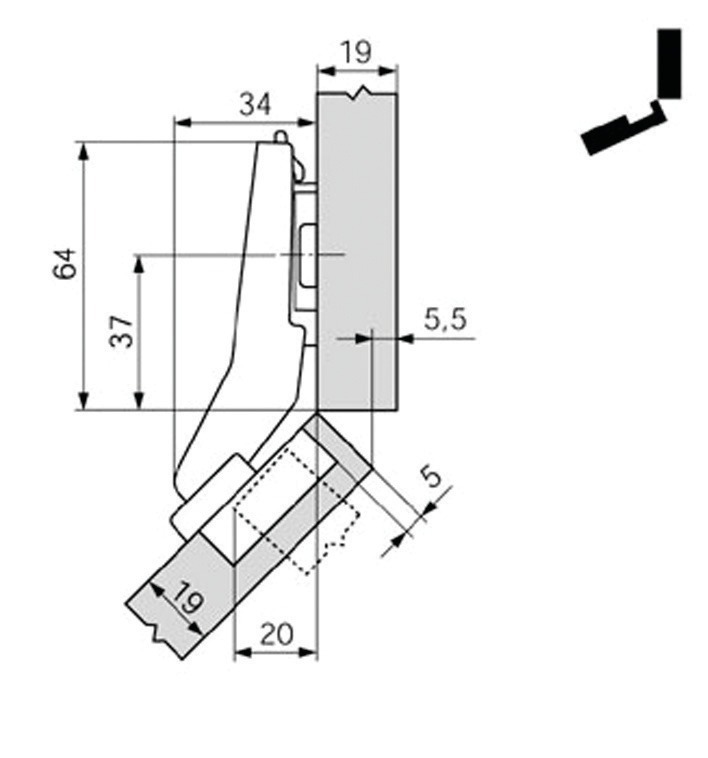 Libellé Charnière Clip Top ouverture 95° pour porte sortante d'angle -45° à visser - BLUM - CHA79B3450