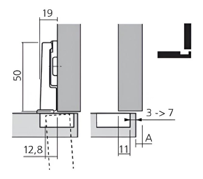 Grâce à son design versatile, cette charnière est compatible avec les portes montées en applique ou semi-applique, offrant ainsi une grande flexibilité lors de la conception ou de la rénovation de la cuisine.