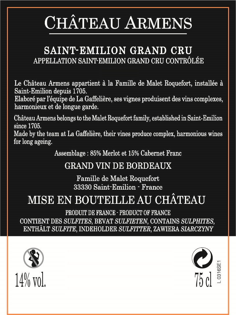 | Libellé | Château Armens, 2020 - Saint-Emilion Grand Cru AOP - Rouge - 75 cl |