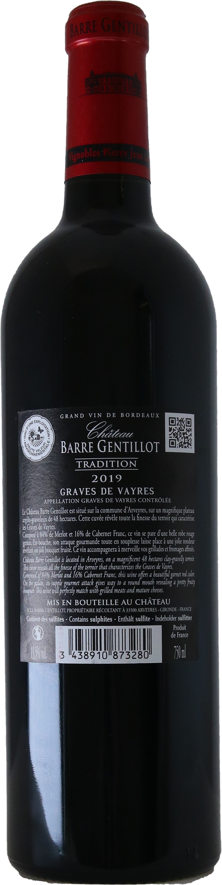 | Libellé | Château Barre Gentillot Tradition, 2019 - Graves de vayres AOP - Rouge - 75 cl |