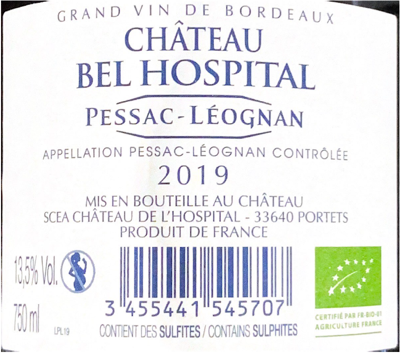 Libellé Château Bel Hospital BIO, 2019 - Pessac-Léognan AOP - Rouge - 75 cl