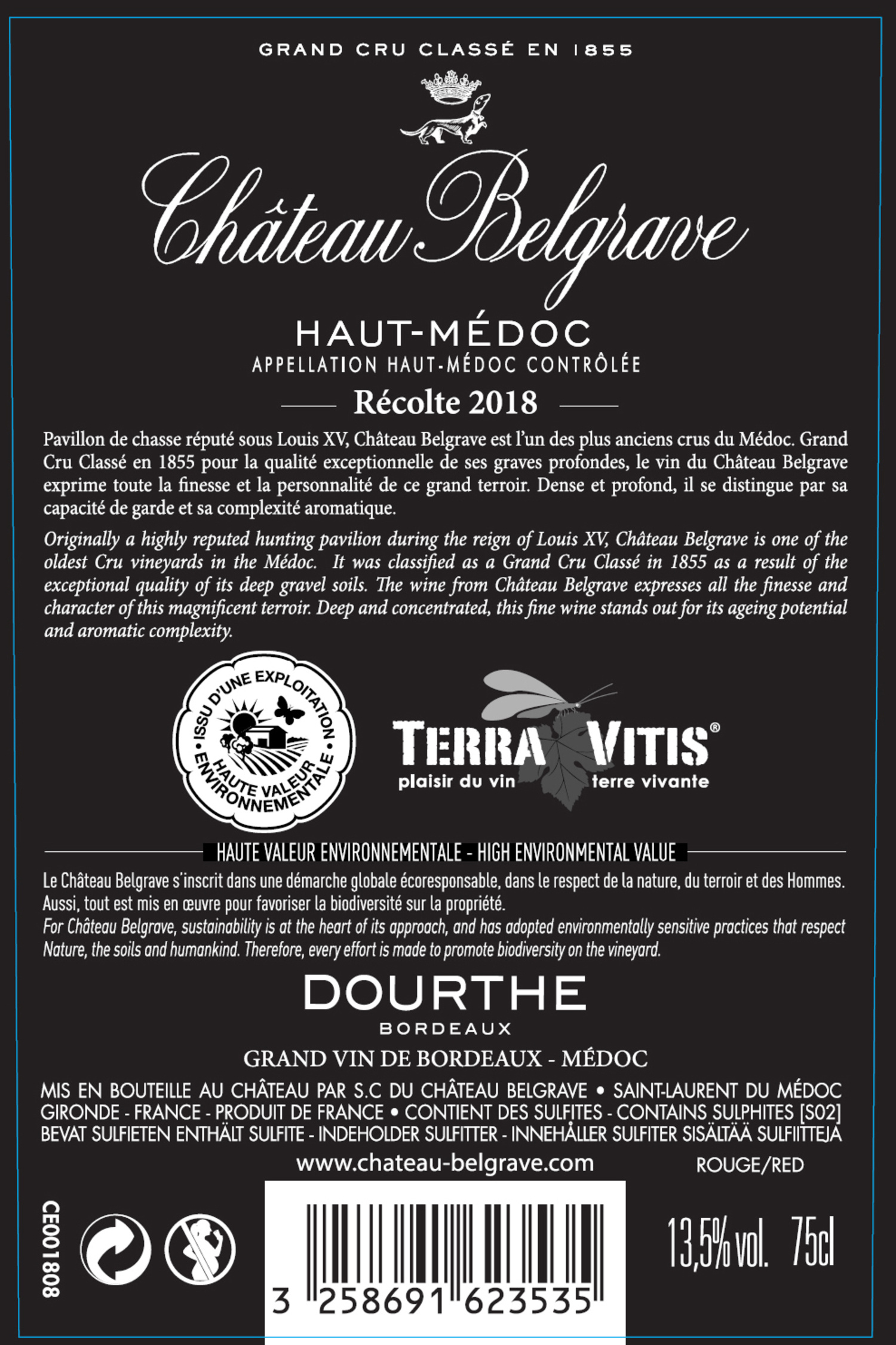 Libellé Château Belgrave, 2018 - Haut-Médoc AOP - Rouge - 75 cl