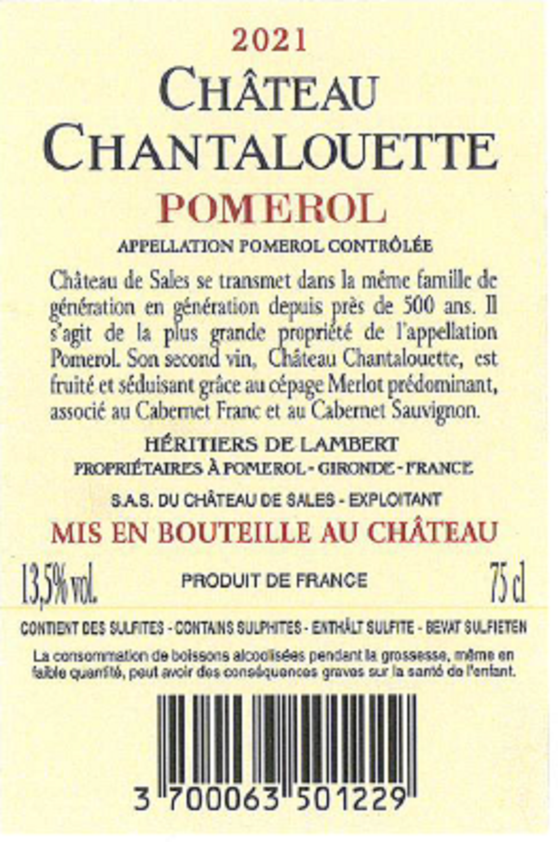 | Libellé | Château Chantalouette, 2021 - Pomerol AOP - Rouge - 75 cl |