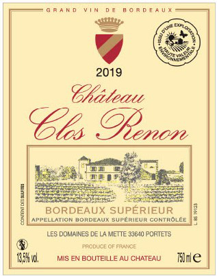 Libellé Château Clos Renon, 2019 - Bordeaux Supérieur AOP - Rouge - 75 cl