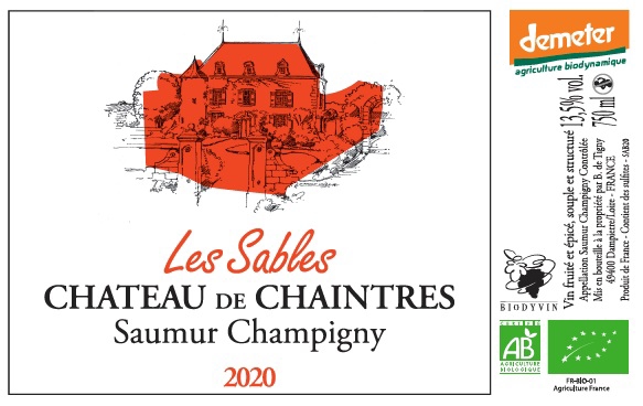 | Libellé | Château de Chaintres Les Sables BIO, 2020 - Saumur-Champigny AOP - Rouge - 75 cl |