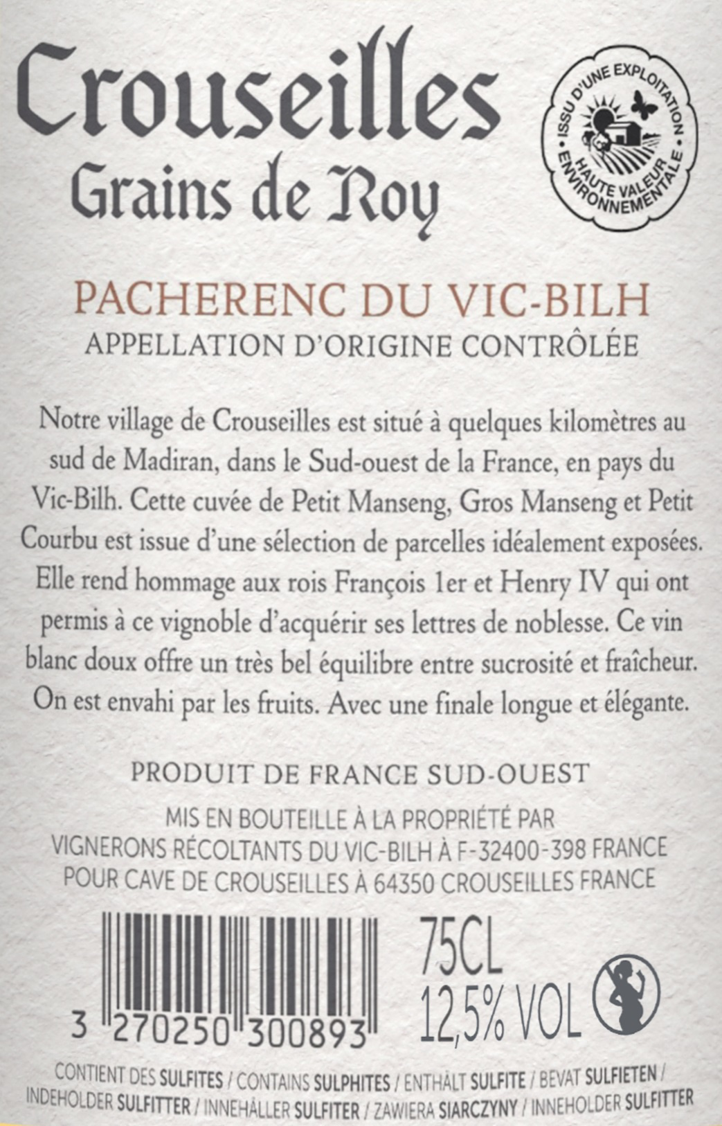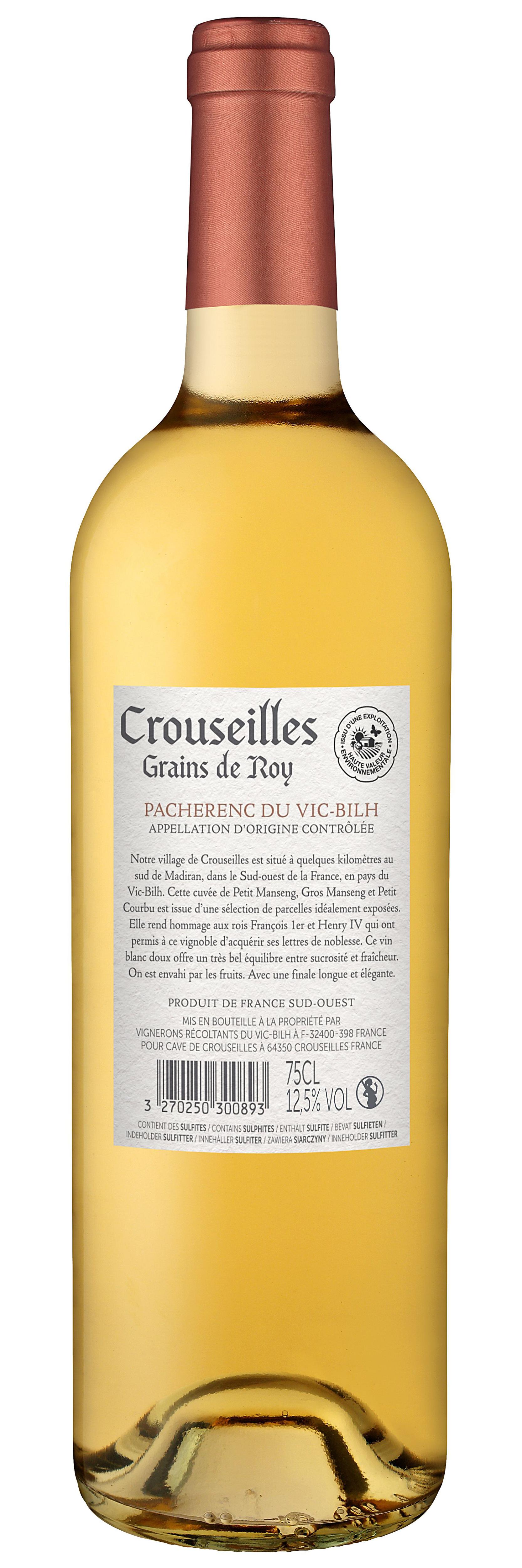 | Libellé | Château de Crouseilles Grains de Roy, 2021 - Pacherenc du Vic-Bilh AOP - Blanc Moelleux - 75 cl |