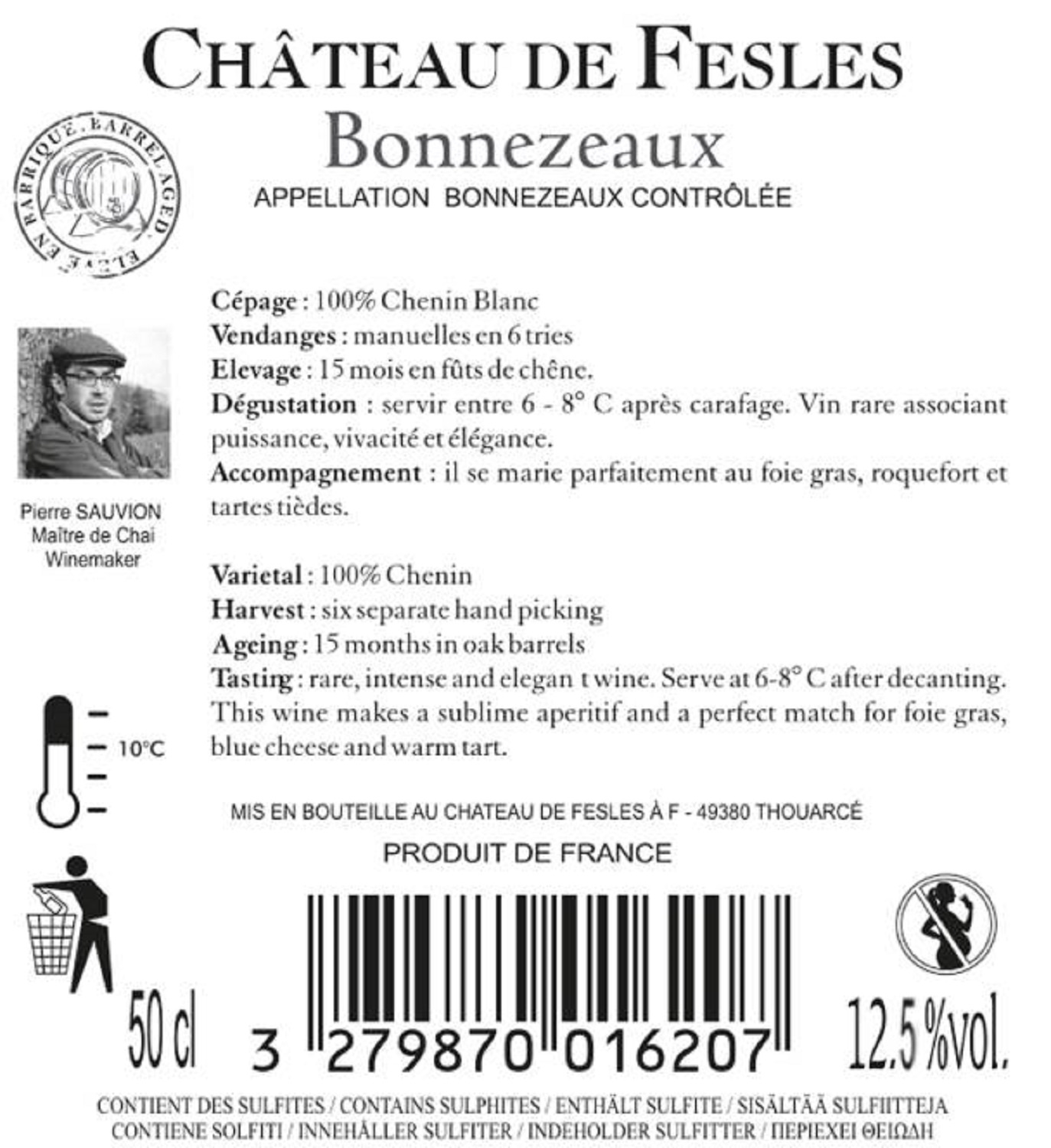 | Libellé | Château de Fesles, 2015 - Bonnezeaux AOP - Blanc Doux - 50 cl |