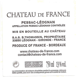 | Libellé | Château de France, 2021 - Pessac-Léognan AOP - Rouge - 75 cl |