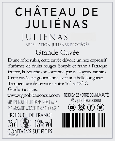 | Libellé | Château de Julienas Grandes Réserves, 2022 - Juliénas AOP - Rouge - 75 cl |