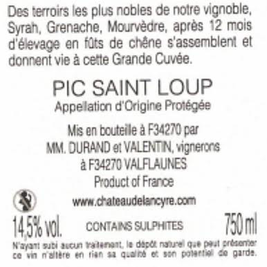 Libellé Château de Lancyre, 2020 - Pic-Saint-Loup AOP - Rouge - 75 cl