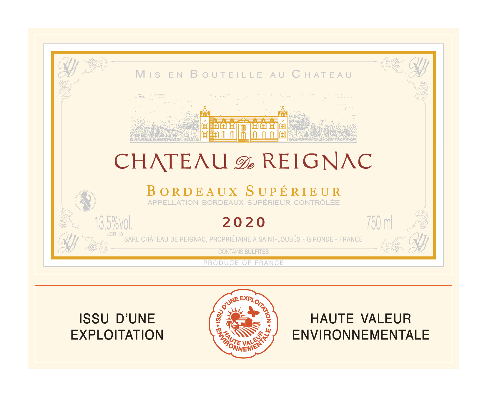 | Libellé | Château De Reignac, 2020 - Bordeaux Supérieur AOP - Rouge - 75 cl |