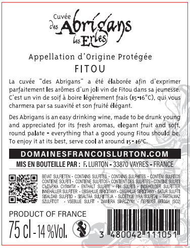 Libellé Château des Erles Cuvée des Abrigans, 2022 - Fitou AOP - Rouge - 75 cl