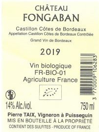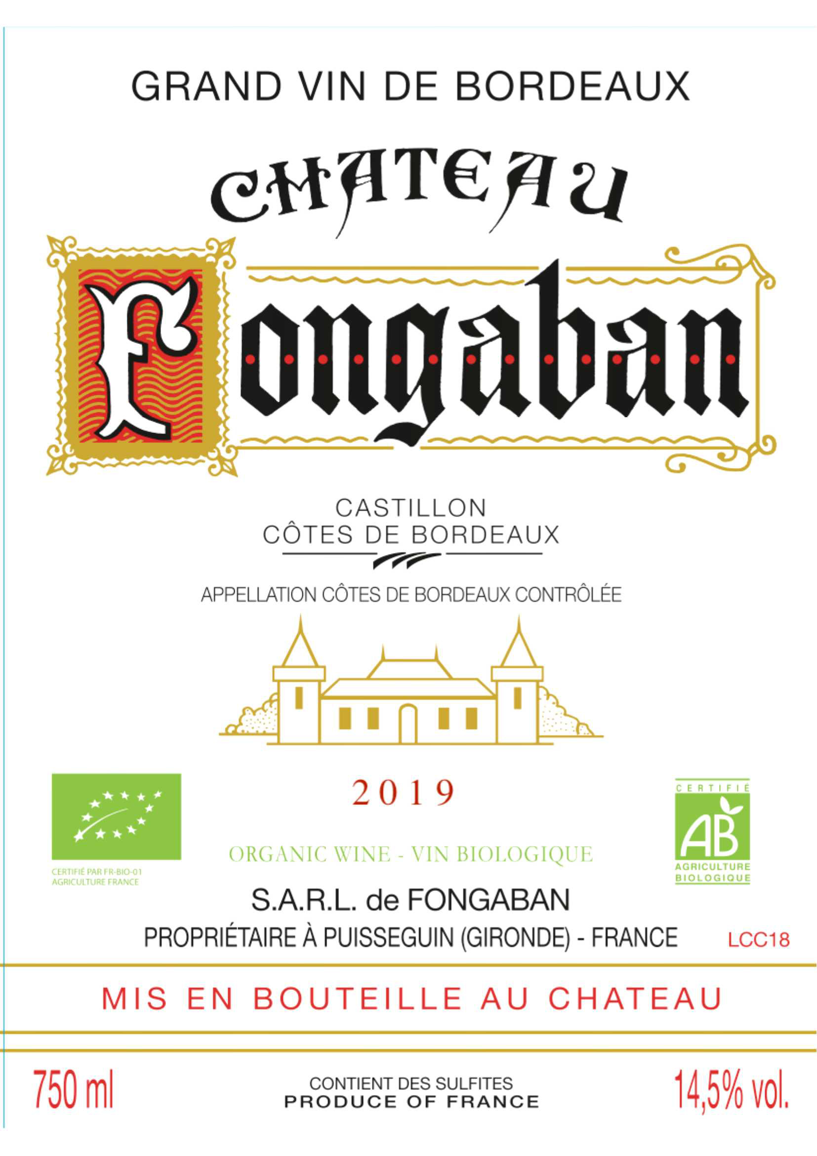 | Libellé | Château Fongaban BIO, 2019 - Castillon Côtes de Bordeaux AOC - Rouge - 75 cl |