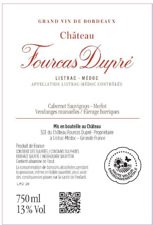 | Libellé | Château Fourcas Dupré, 2021 - Listrac-Médoc AOP - Rouge - 75 cl |