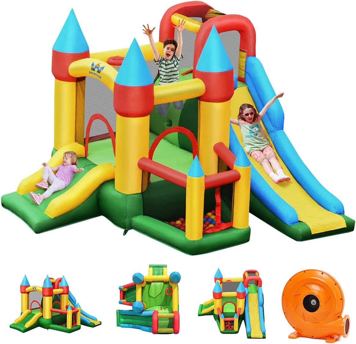 - Multiples jeux au choix : Notre château gonflable combine plusieurs fonctions et divertissements ensemble y compris toboggan double, rebond, pitching, bobo pool, virole pour une joie maximale. Au plus 4 enfants peuvent s’amuser simultanément,max 3 personnes sur le souffleur.