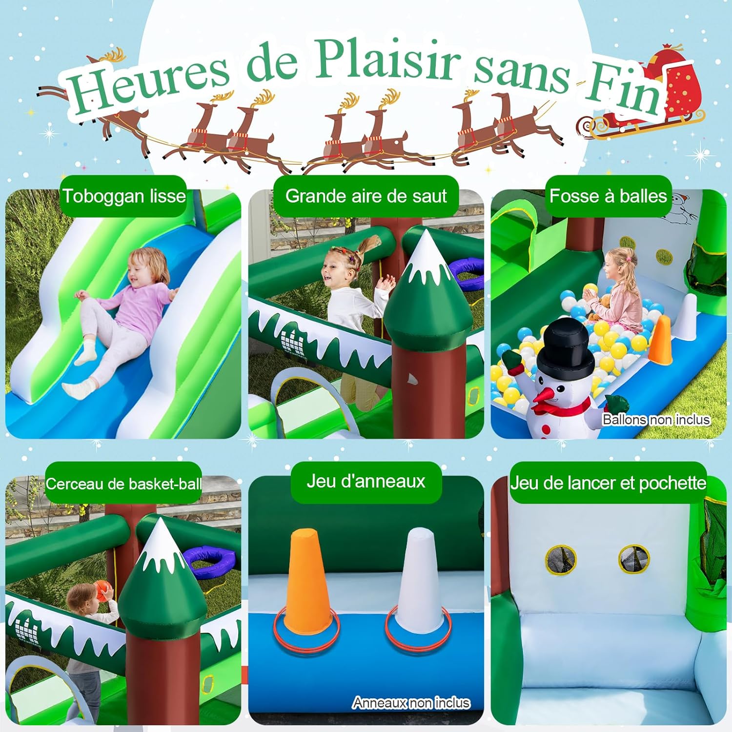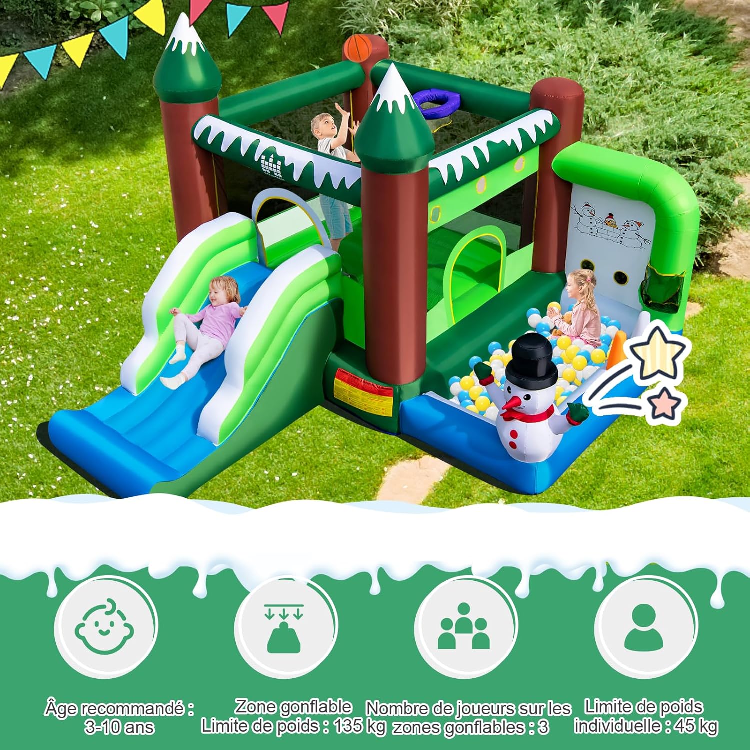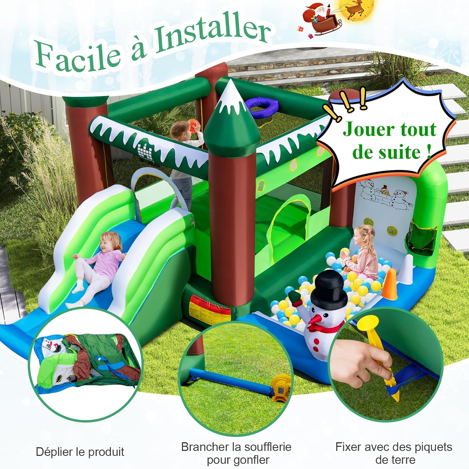 | Libellé | Château gonflable enfants, toboggan, fosse à balles, panier de basket-ball, trous de lancement, lancer d'anneaux, souffleur 680w |