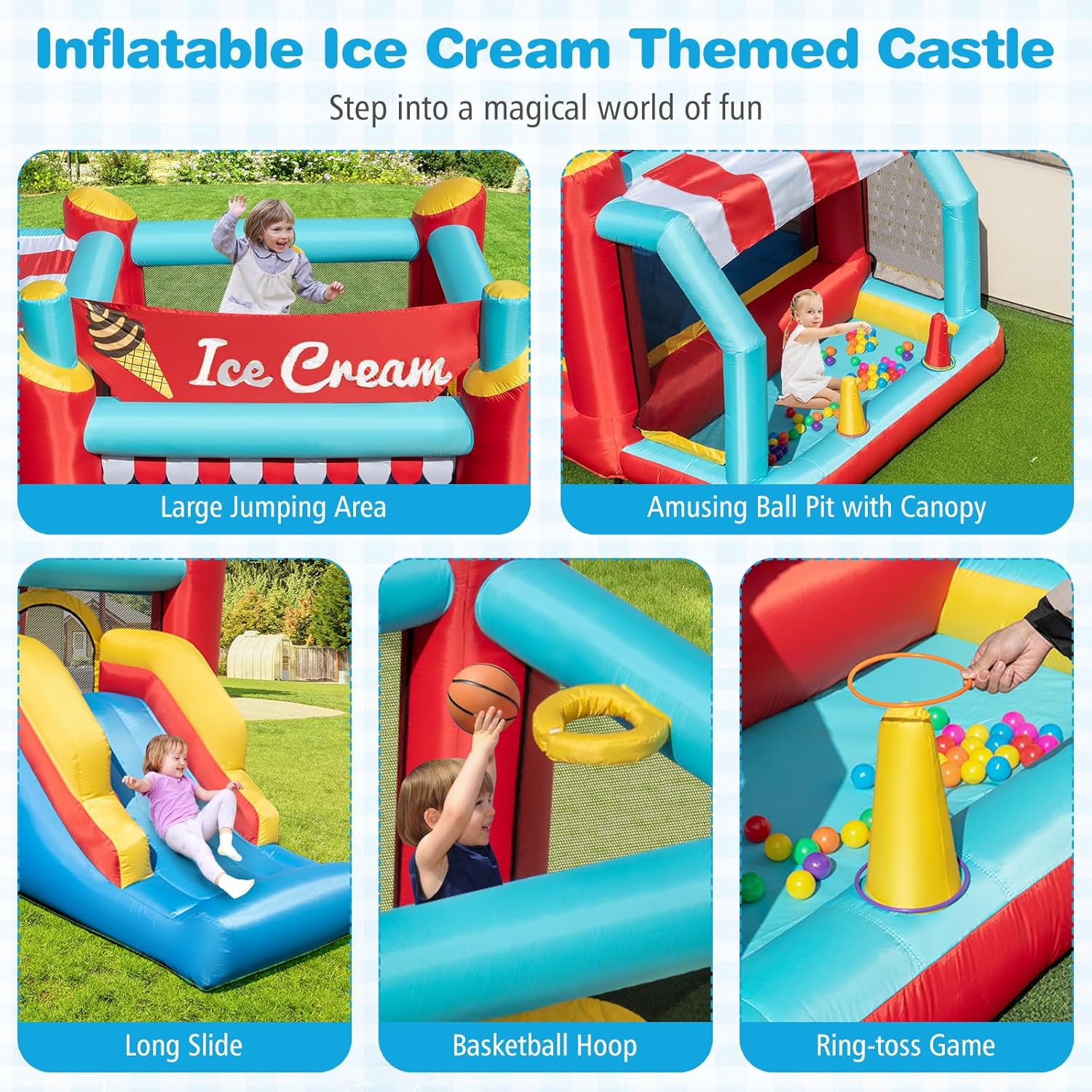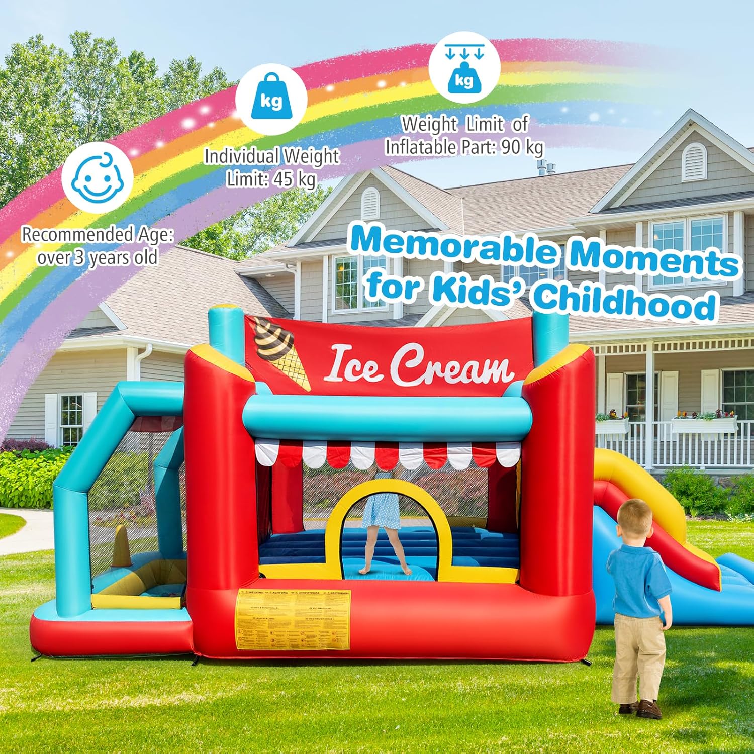 - Thème fantaisiste du camion de crème glacée : Ravissez n’importe quel enfant avec ce château gonflable de crème glacée accrocheur, idéal pour les anniversaires, les vacances ou les fêtes d’été. C’est un excellent cadeau pour les garçons et les filles âgés de 3 à 10 ans, créant des souvenirs précieux lors des réunions de famille ou des fêtes de quartier.