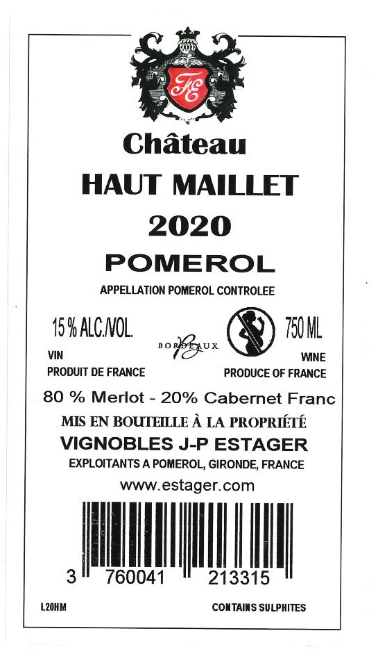 | Libellé | Château Haut Maillet, 2020 - Pomerol AOP - Rouge - 75 cl |