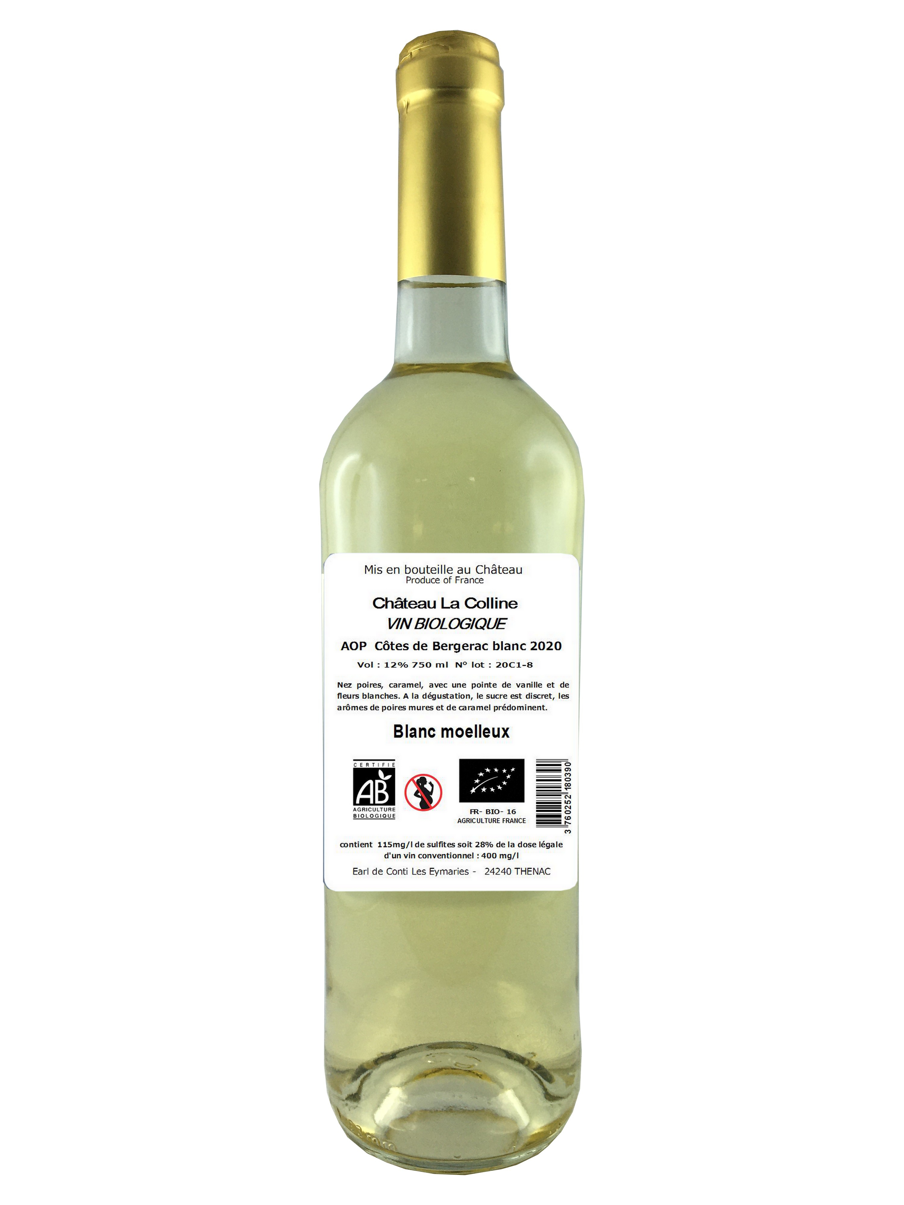 Libellé Château la Colline BIO, 2020 - Côtes de Bergerac AOP - Blanc Moelleux - 75 cl